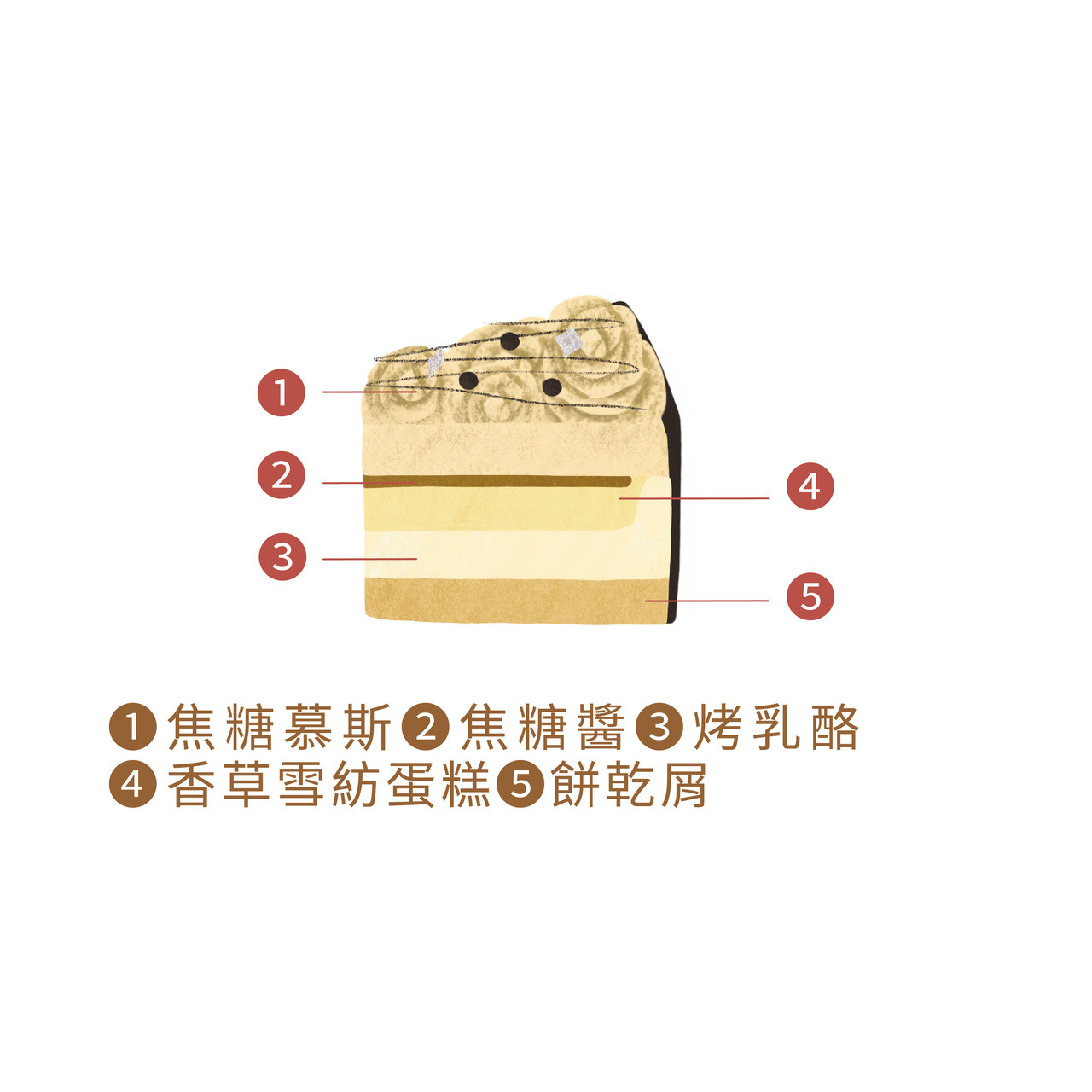 ✦ 焦糖慕斯 ✕ 焦糖醬 ✕ 烤乳酪✕ 香草雪紡蛋糕 ✦